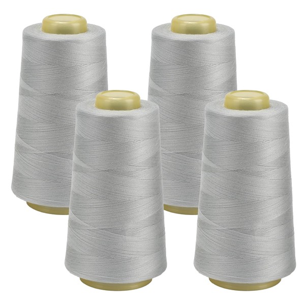 FOGAWA 4 Rolls of Sewing Thread Polyester Sewing Thread Sewing Machine Yarn, 40s/2, 3000 yards, Yarn Spool Overlock Yarn for Sewing Work, Quilting, Patchwork, Clothing (Light Grey 3021)