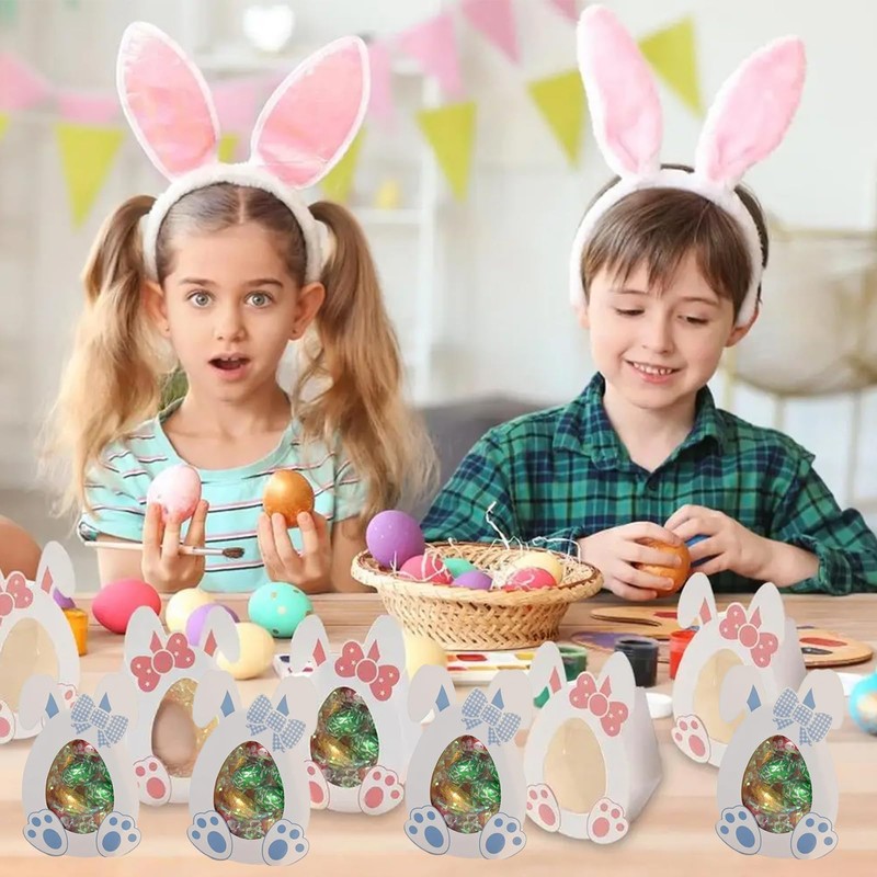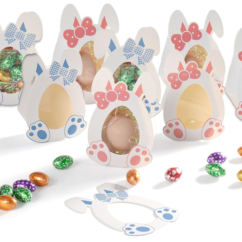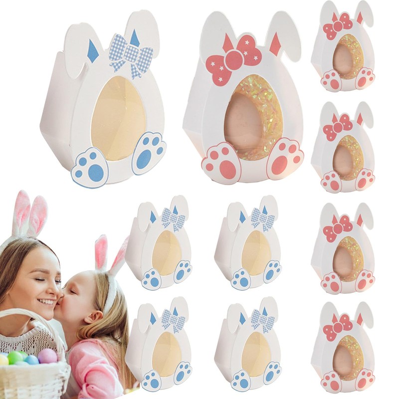 Fogcosy 10 Pcs Easter Treat Boxes with Egg Window - Pink Blue Bunny Ear for Cookie Goodie Candy Sweet Party, Easter Party Boxes for Easter Egg Hunts Picnics Gift Box Party Favours