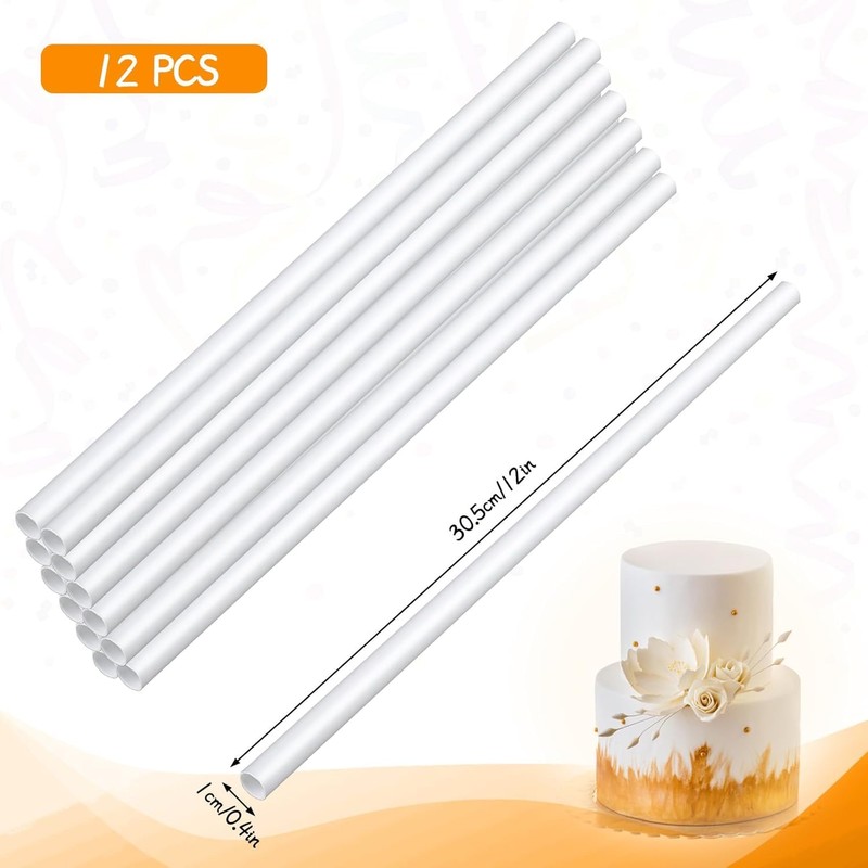 - Package Contents: Includes 12 pieces of cake sticks for layered cakes, enough quantity to meet your needs, suitable for layered cake construction, it is recommended to use 1 dowel for every 2 inches of cake.