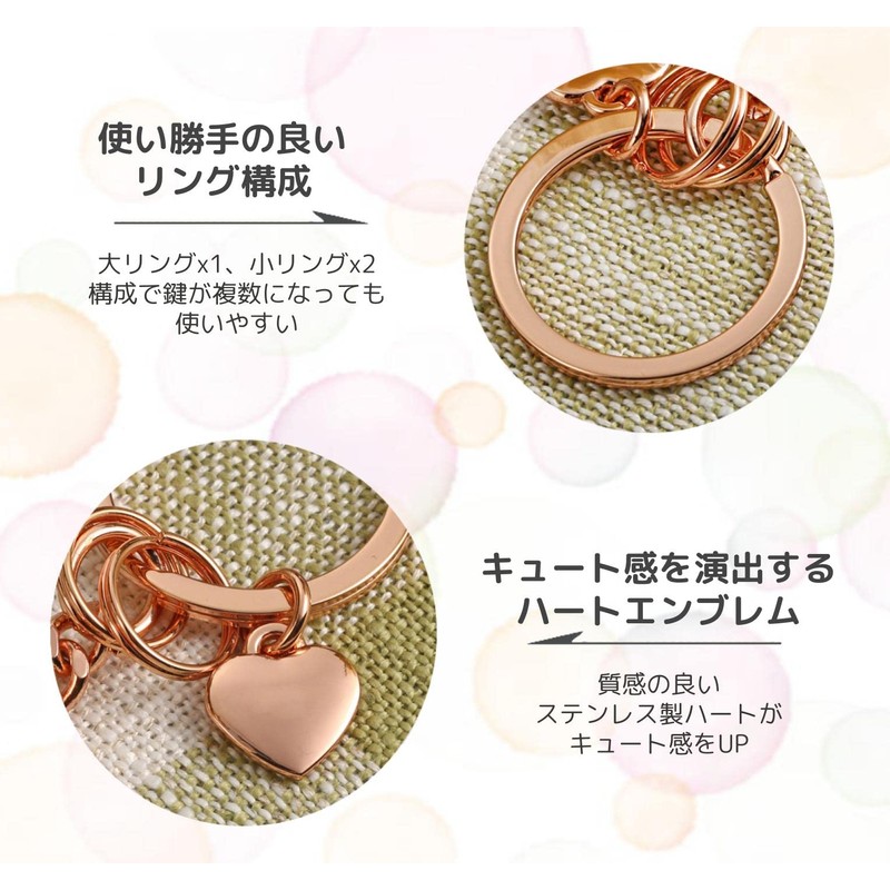 - Easy to use ring configuration: The large ring x 1, small ring x 2, making it easy to use even if multiple keys are used. Heart Emblem: The high-quality stainless steel heart enhances its cuteness