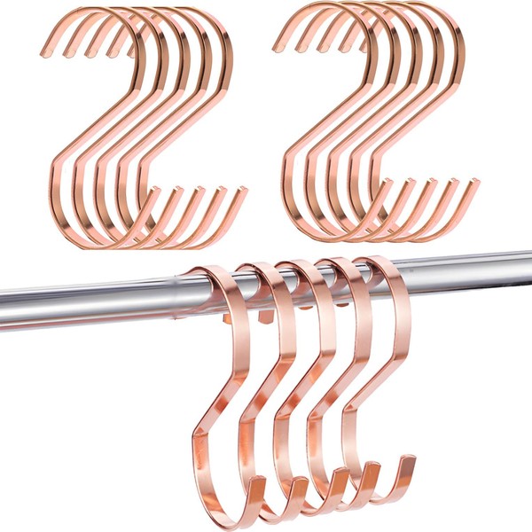 fogman Hooks, S-Shaped Hooks, Metal, Stylish, Large, Universal Hooks, Hardware, Hanger, Set of 10 (Rose Gold)