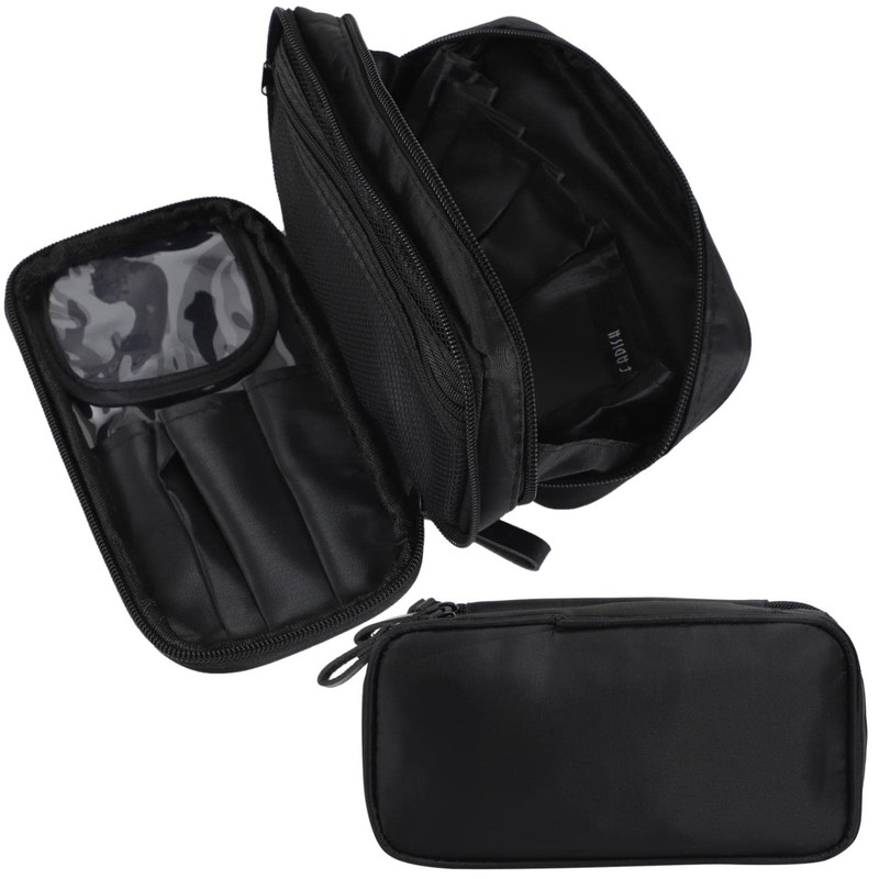 Fogman Makeup Pouch, Large Capacity, 3 Layers, Functional, Compact, Organizable, Easy to Use, Open, black