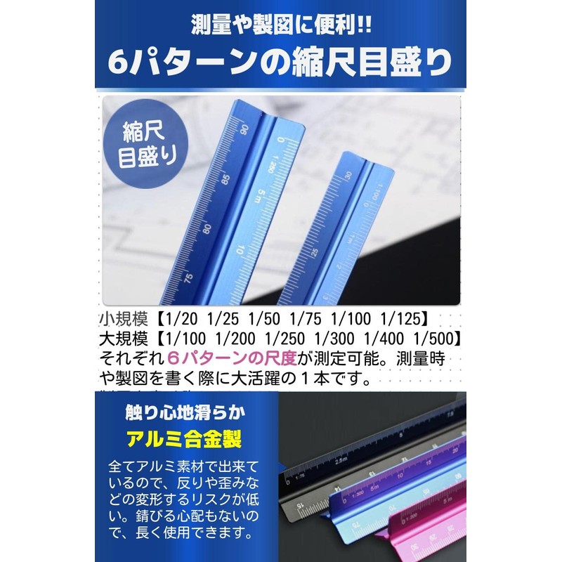 - 6 scale scales in 6 patterns: Small scale (1/20, 1/25, 1/50, 1/75, 1/100, 1/125) Large scale (1/100, 1/200, 1/250, 1/300, 1/400, 1/500). Each can measure 6 patterns. Great for surveying and drawing drawings