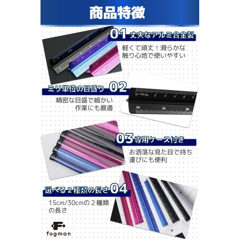 fogman Triangular Scale Aluminum Alloy Scale Ruler, 5.9 inches (15 cm), 11.8 inches (30 cm), Small, Large, Storage Case (Small, 11.8 inches (30 cm) Pink)