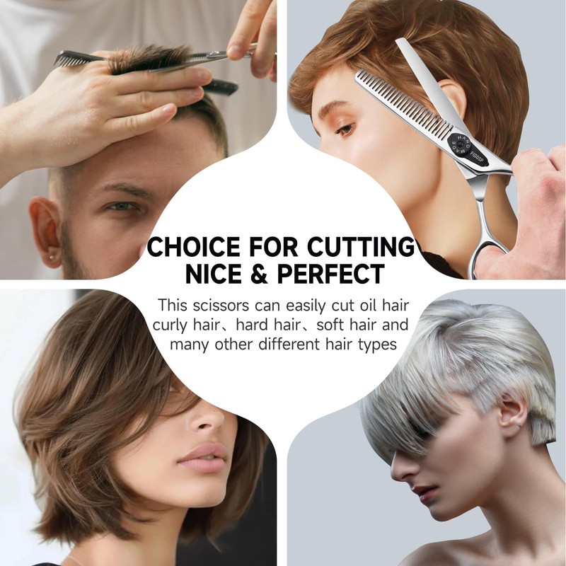- Haircutting Scissors Scope of Application: Gift for barbers, licensed cosmetologists and beginners scissors; scissors for hair also can be used in barbershops, hair salons, hair studios and home; suitable for cutting wet and dry hair, as well as nose hair, beard, temple hair.