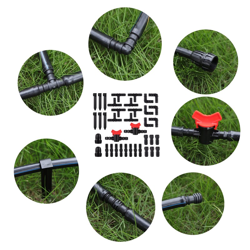 - [Practicality]: With this set of basic components to build a maintenance-free drip irrigation system, you can quickly start installing the drip irrigation system. The number of products is 38, so you can store more parts for later irrigation repairs or extensions after installation.
