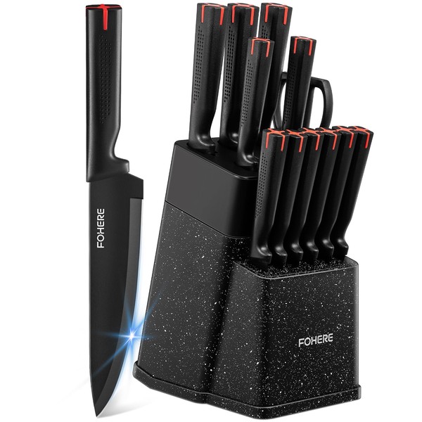 FOHERE Knife Set with Block 13 Pieces Stainless Steel Knife Sets for Kitchen ...