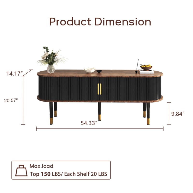 Fohufo Walnut-Black TV Stands for Living Room - 54'' Mid-Century Modern TV Stand for Bedroom with Tambour Doors and Storage Cabinet, Media TV Console up to 65'' TVs, Fluted Entertainment Center