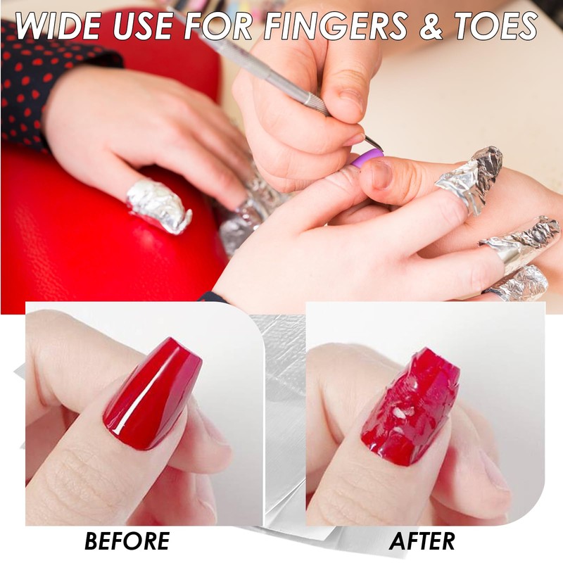 - The foil is soft and easy to wrap around fingers and toes. Each sheet of paper contains a cotton pad in the middle, which absorbs well and makes nail varnish removal simple.