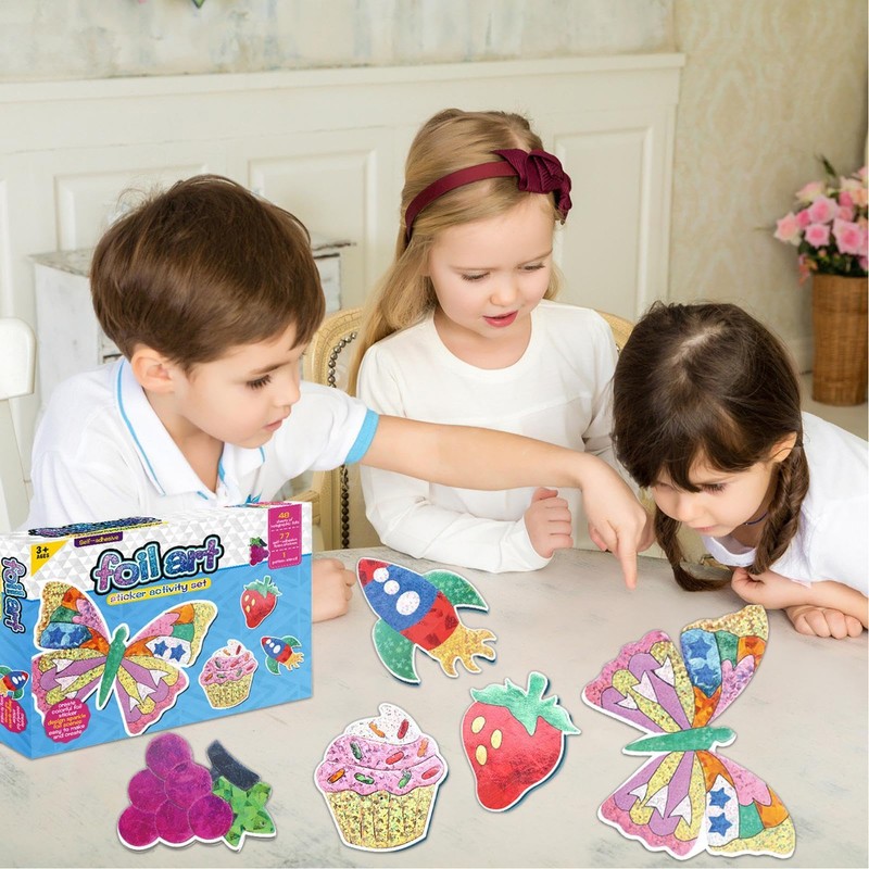 - Harmless material: Our aluminum foil art kit releases your child's creativity! Made with soft EVA boards and safe, harmless aluminum foil stickers, it provides an artistic outlet for kids while ensuring their safety