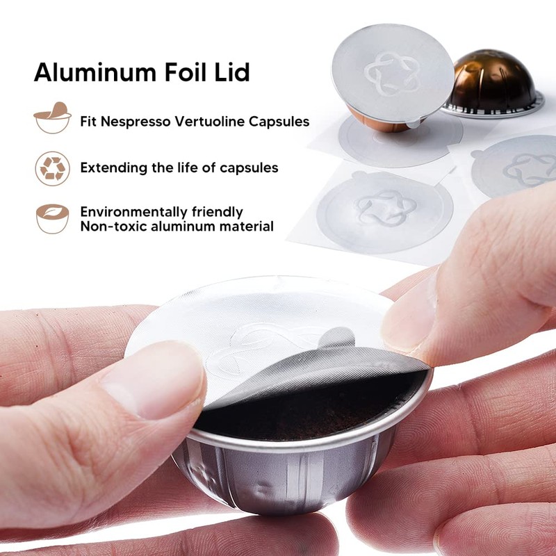 - Cost-effective and Environmentally Friendly: Save money and reduce waste by reusing Nes.presso Vertuo capsules with our premium coffee pod foil seals. Enjoy your favorite brew while contributing to sustainability efforts.