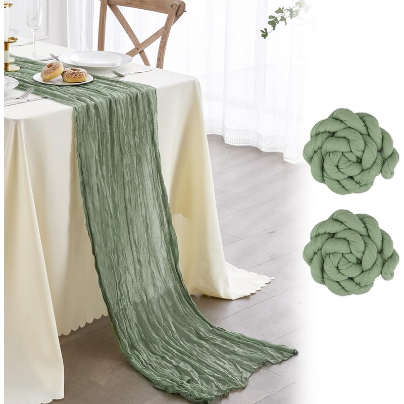 - 3. Sustainable table runner: reusable cheese cloth, robust for indoor and outdoor events.