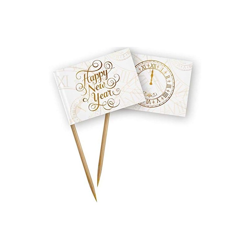 Folat 04449 50 Party Picks White with Gold Print Happy New Year