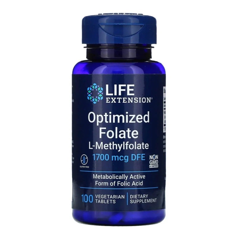 - PORCIONES: 100 por envase Descubre una fórmula avanzada de folato bioactivo con Optimized Folate de Life Extension, un suplemento diseñado para ofrecer una forma metabólicamente activa de ácido fólico que el cuerpo puede utilizar de inmediato. Cada tableta proporciona 1700 mcg DFE de folato como L
