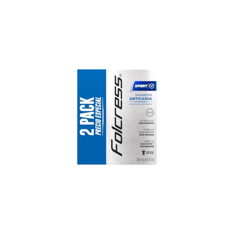 Folcress Xpert Duopack Shampoo Anticaida | Sin sulfatos, parabenos y colorantes, estimula el crecimiento, detiene la caida, shampoo de uso diario, pelo visiblemente más grueso, para hombres | 250 ml c/u