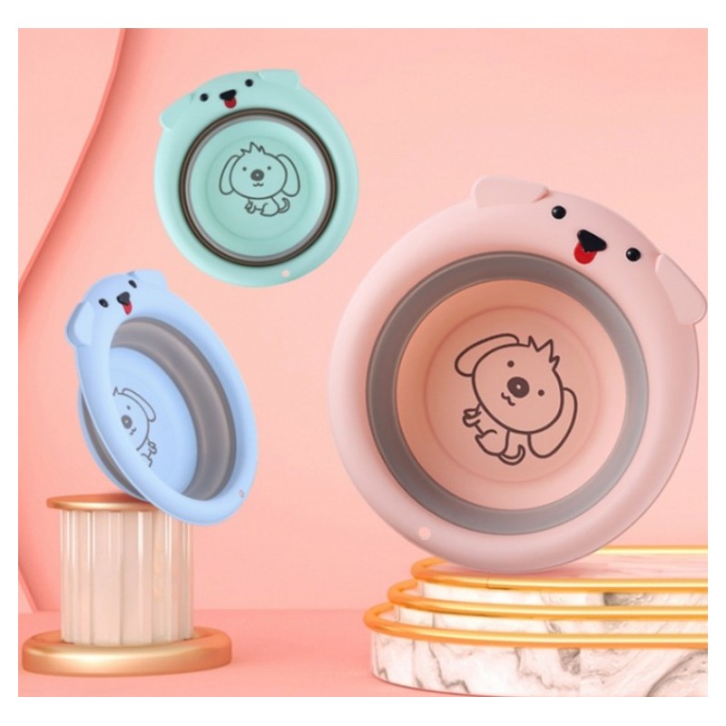Foldable basin wash basin round folding portable plastic basin dog character JD-46 Pink 2ea