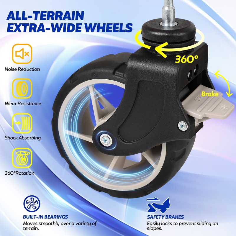 - Foldable & Portable:Compact, ergonomic design with collapsible wheels and frame for effortless storage in car trunks, RVs, or tight spaces. Adventure-ready in seconds!