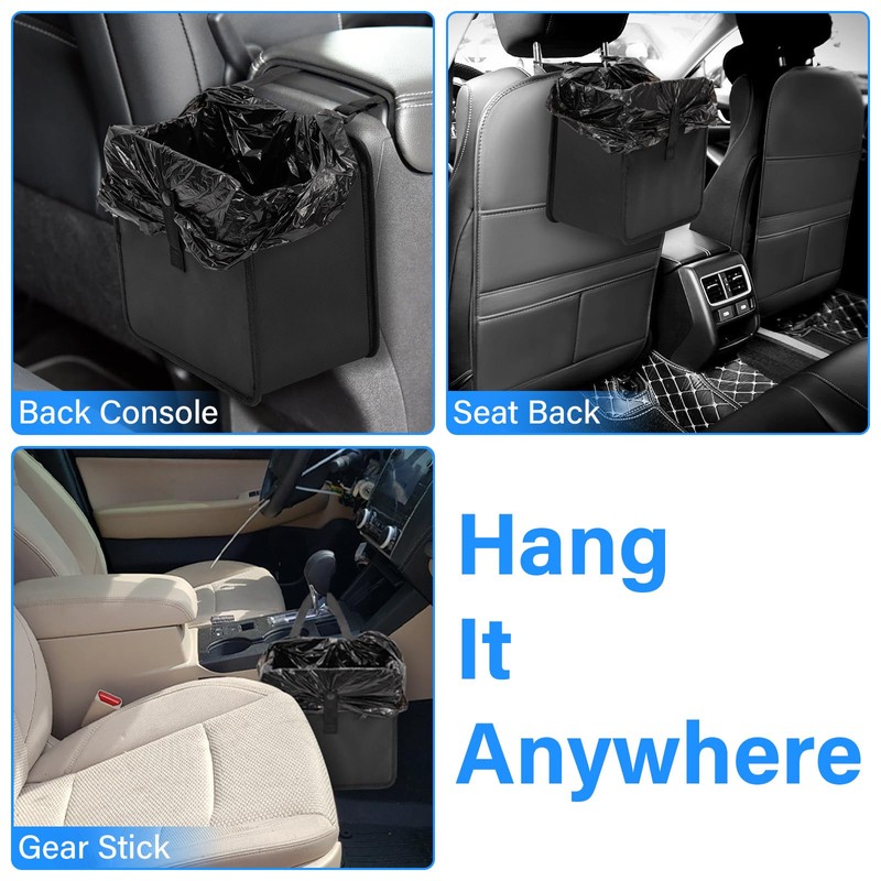 - 【Foldable Design】: This car trash bin is easily foldable, allowing you to store it away when not in use, maximizing your car's available space
