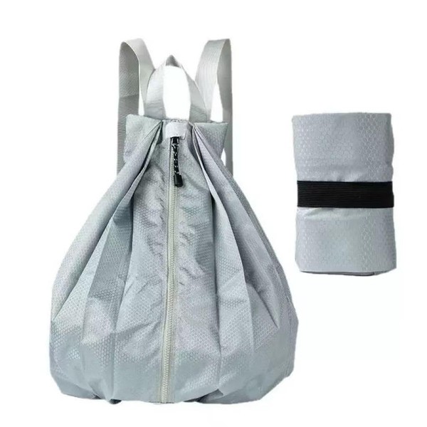 Foldable Drawstring Backpack, Lightweight Travel Daypack, Grey