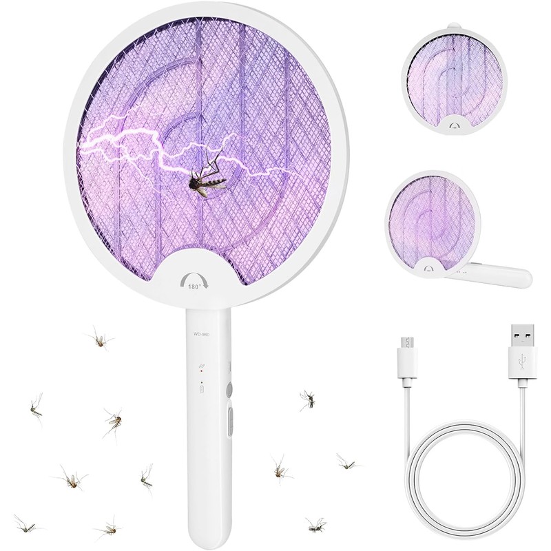 - 🌟 【Foldable & Portable Design】Carry it to swat mosquitoes, place it on a table, or hang it on a wall. The handgrip rotates 180° to fit comfortably in your bag, making it perfect for taking along on camping or any outdoor activities.
