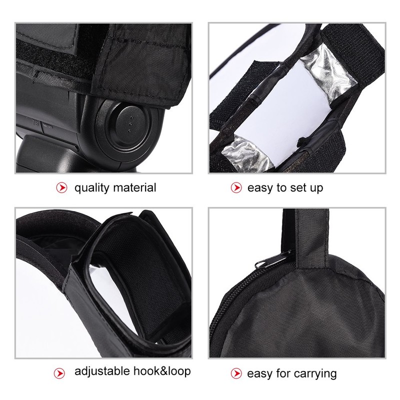 - With built-in adjustable hook&loop strap, fits tightly onto most camera flashes, and easy to set up and remove
