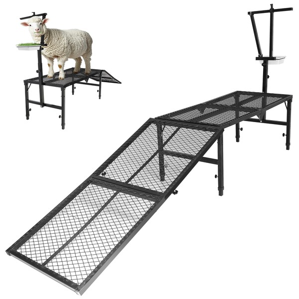 • 【Versatile Tool for Livestock Care】 Perfect for goats, sheep, calves, and other similarly-sized animals, this livestock trimming stand with ramp is an essential tool for farmers, breeders, and veterinarians. Ideal for everyday tasks such as grooming, milking, hoof trimming, shearing, bathing and even animal transportation. Designed to meet the diverse needs of livestock care, it provides both stability and convenience.