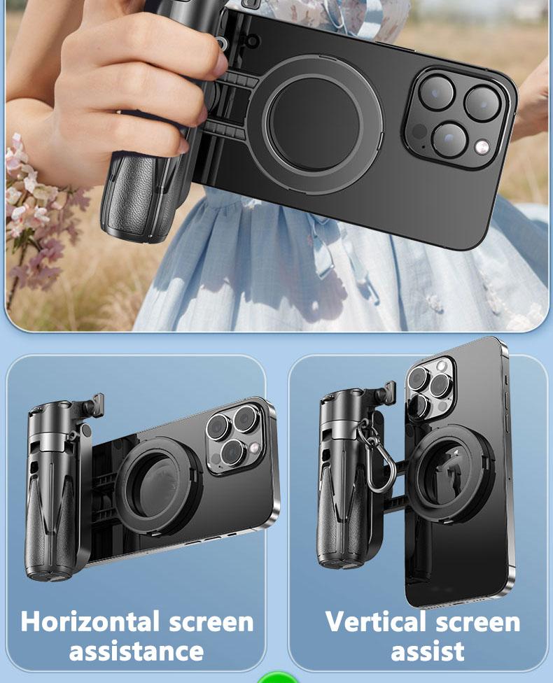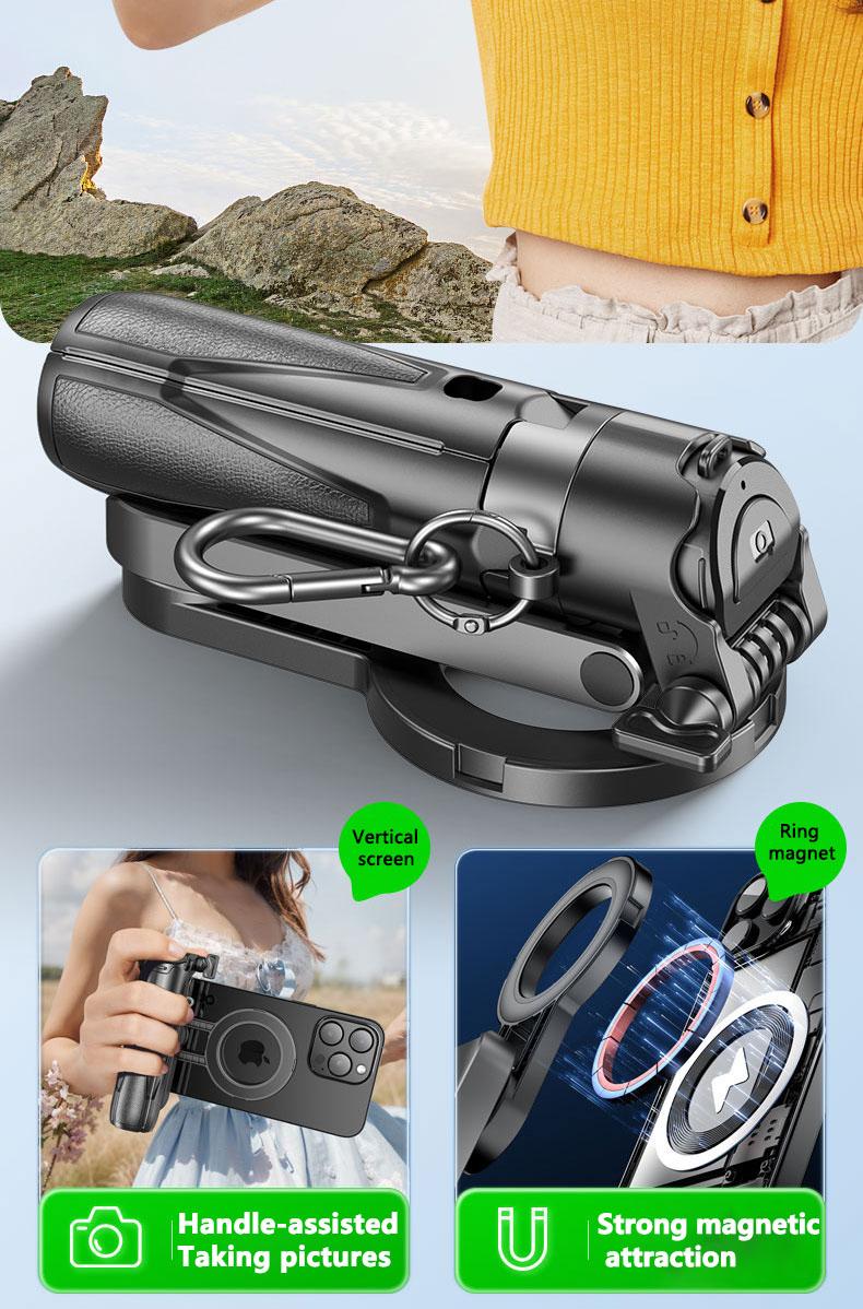Take your photography and vlogging to the next level with the Mini Magnetic Selfie Stick – an ultra-portable and foldable phone camera stand designed for effortless shooting on the go! Whether you're capturing memories while traveling or filming smooth handheld videos, this compact yet powerful accessory has you covered.