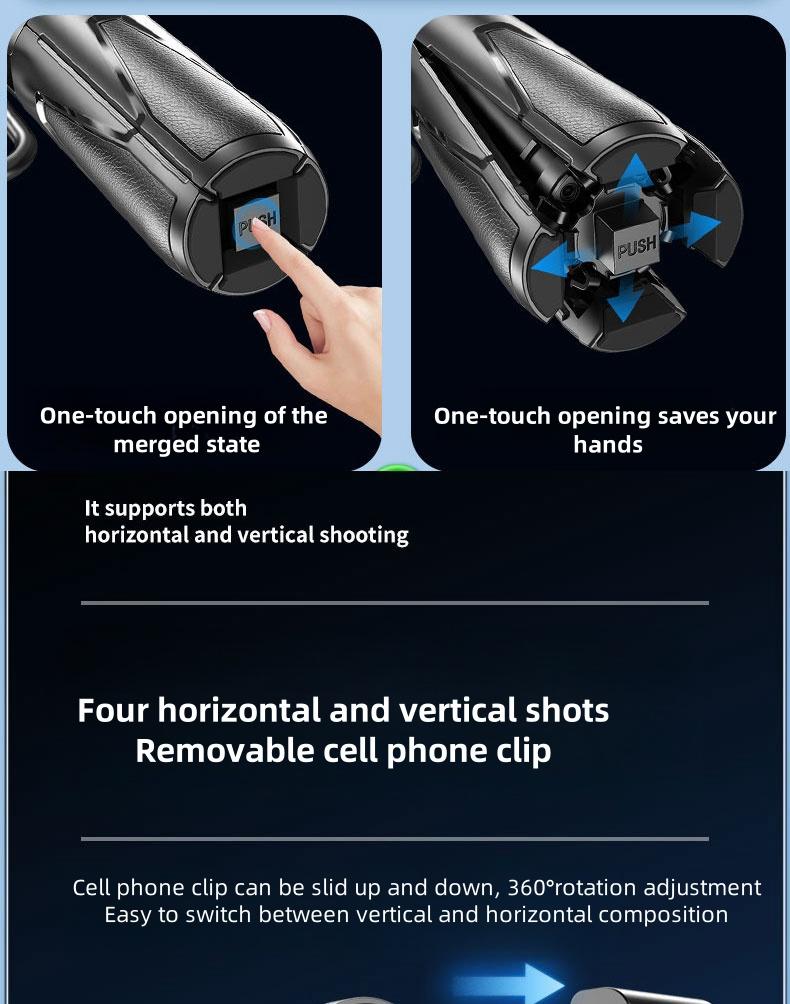 - Versatile Use – Functions as a selfie stick, phone stand, and stable handheld grip, perfect for travel, vlogging, live streaming, and hands-free photography.