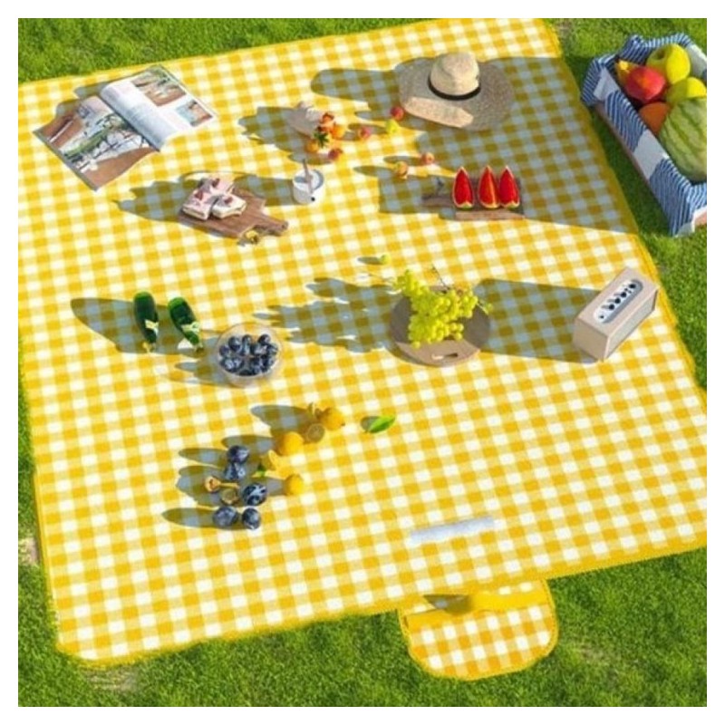 Foldable Picnic Mat with Handle - Large 8-Person Beach Mat Camping Yellow