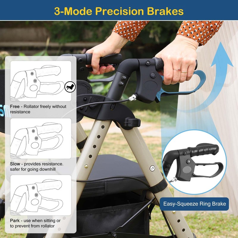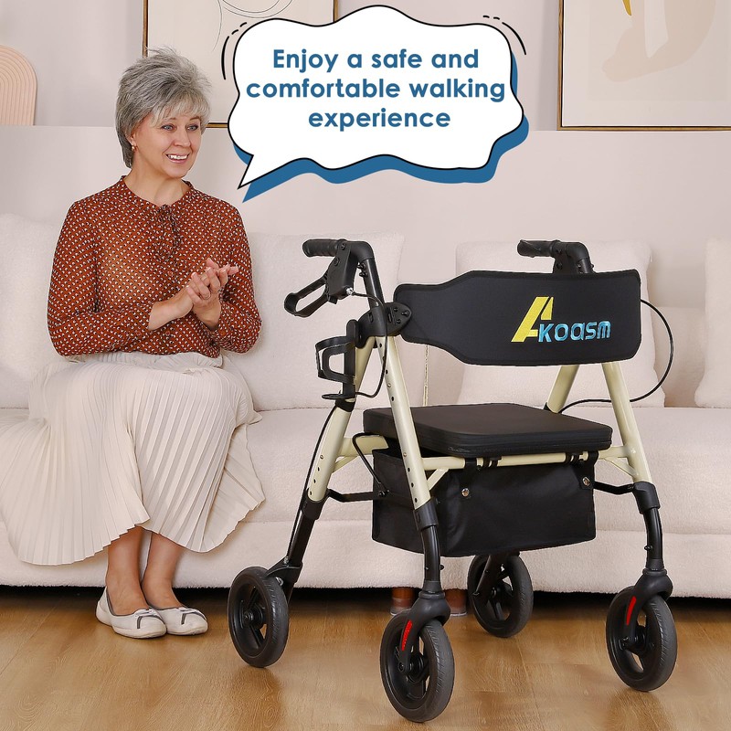 - 【3-MODE BRAKES & ALL-ROUND SAFETY】3-in-1 Braking System (Free/Slow/Stop) ensures secure use on slopes and crowded areas. Even users with limited strength can effortlessly control Akoasm rollator walkers for seniors with seat