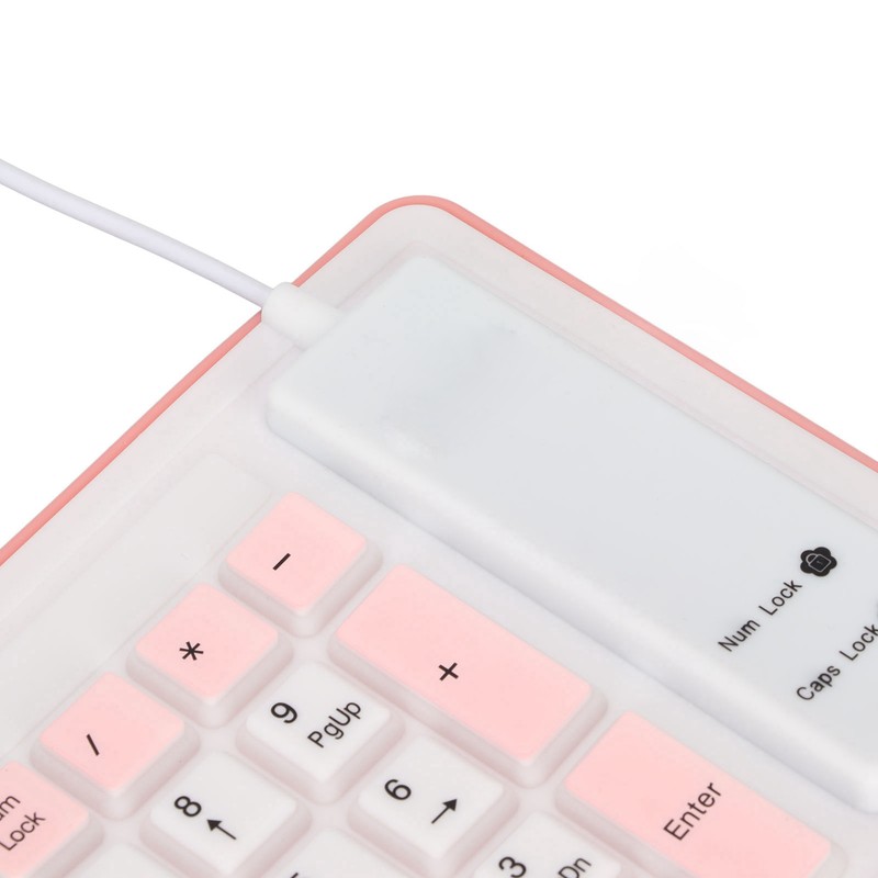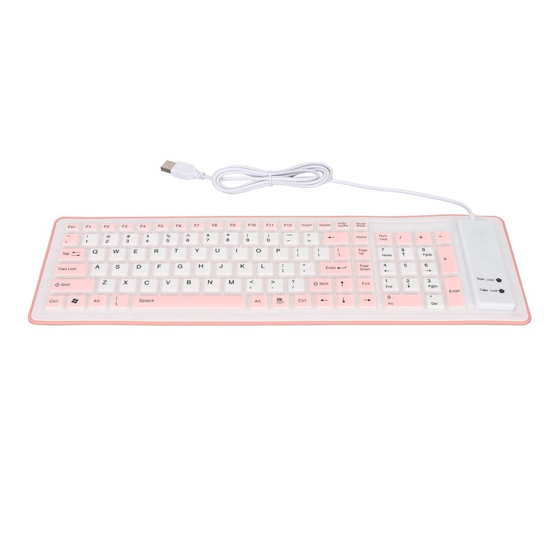 Foldable Silicone Keyboard 103 Keys USB Wired Silicon Foldable Waterproof Mute Fadeless Foldable Keyboard for PC Laptop Pink