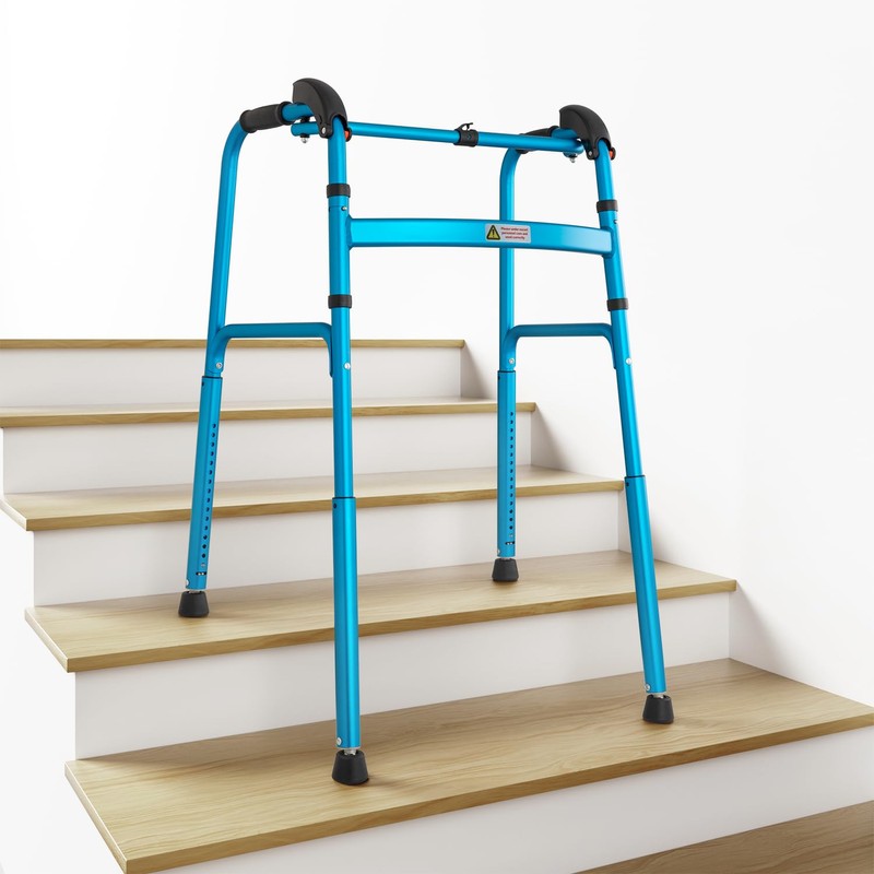 Foldable Stair Climbing Walker for Seniors,Adjustable 4-Leg Height Safety and Convenience Blue