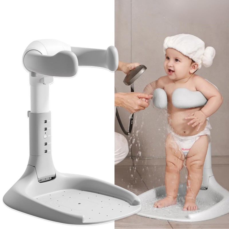 Baby Shower Stand with Adjustable Support – Eases Parent Strain, Prevents Water in Ears, Ensures Thorough Cleaning and Promotes Standing Confidence for Babies 8+ Months (Foldable)