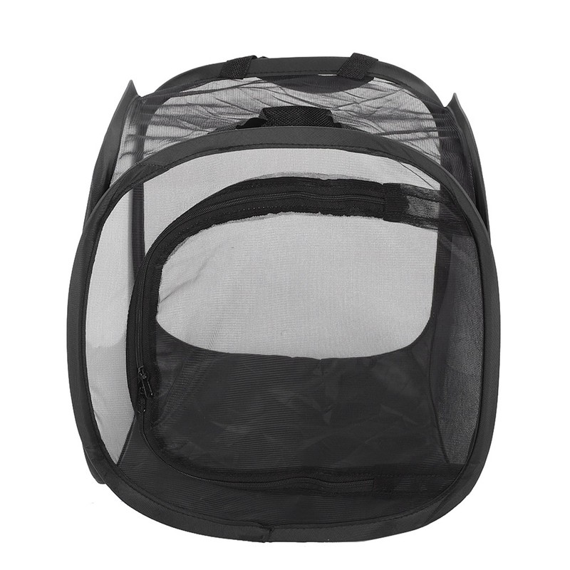 1、Small size and large space, foldable and portable. 2、With high transparency, there are five sides can be observed. 3、With the zip equipped on the sides, you can open and close freely. 4、With elastic storage rope. When not in use, fold the cage well and use the rope to storage it in comapct size. 5、Breathable mesh allows air to circulate and is easy to observe.