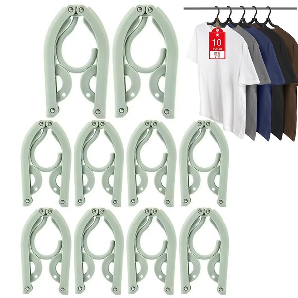 Foldable Travel Hangers 10 Pack w/10 Clips, Cruise Essentials 2025, Portable Hangers Collapsible Hanger Plastic, Travel Must Haves for Suitcase, Hotel, RV, Road Trip, Flying, Camping (Green)