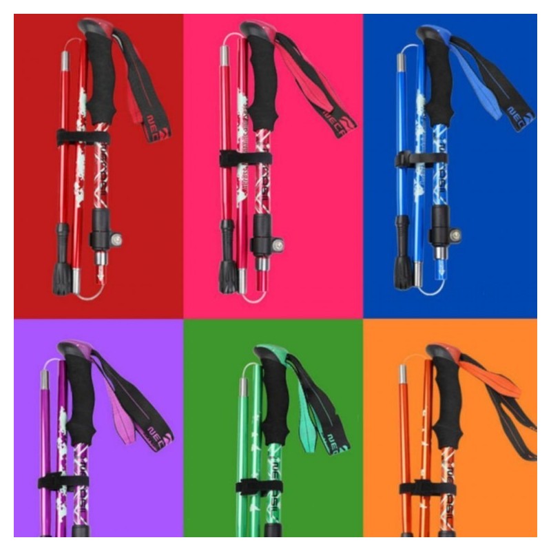 Foldable ultra-light hiking stick aluminum cane perfect 5-stage blue 10ea