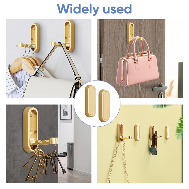 These 2PCS foldable wall hooks are designed to deliver strength, elegance and flexibility in one compact package. Built with durable zinc alloy and finished in luxurious gold, they provide both visual appeal and reliable function across a range of home settings.