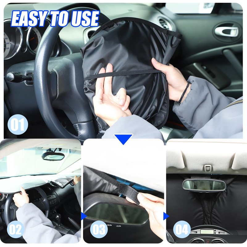 - EASY TO SETUP AND CARRY: The foldable shades quickly and easily fold away into the pouch for convenient placement inside your vehicle