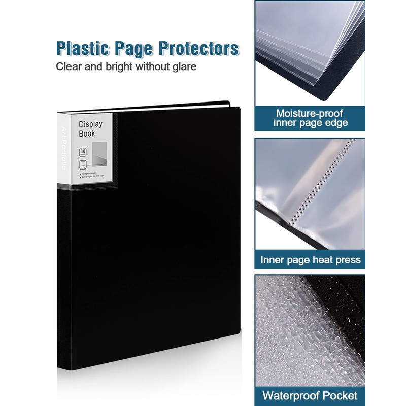 Folder with Plastic Sleeves 4 Pack 9"x12" Black Portfolio Folder for Artwork Display Book 30 Pockets 60 Pages Capacity
