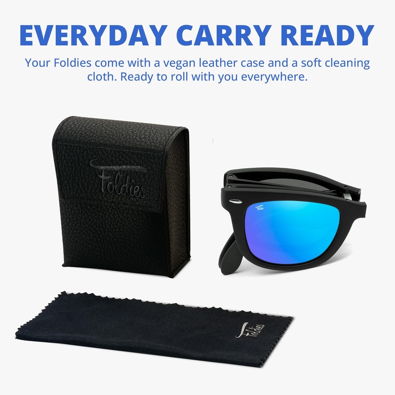 - Funda de piel vegano y paño de limpieza de microfibra: las anteojos de sol Foldies vienen con una elegante funda de piel vegano, con un interior de terciopelo suave. La funda compacta es fácil de llevar, por lo que puedes llevarlas contigo a todas partes. Se incluye un paño de limpieza de microfibra diseñado para quitar suavemente las huellas dactilares, el polvo y las marcas de agua, manteniendo tus lentes claras.
