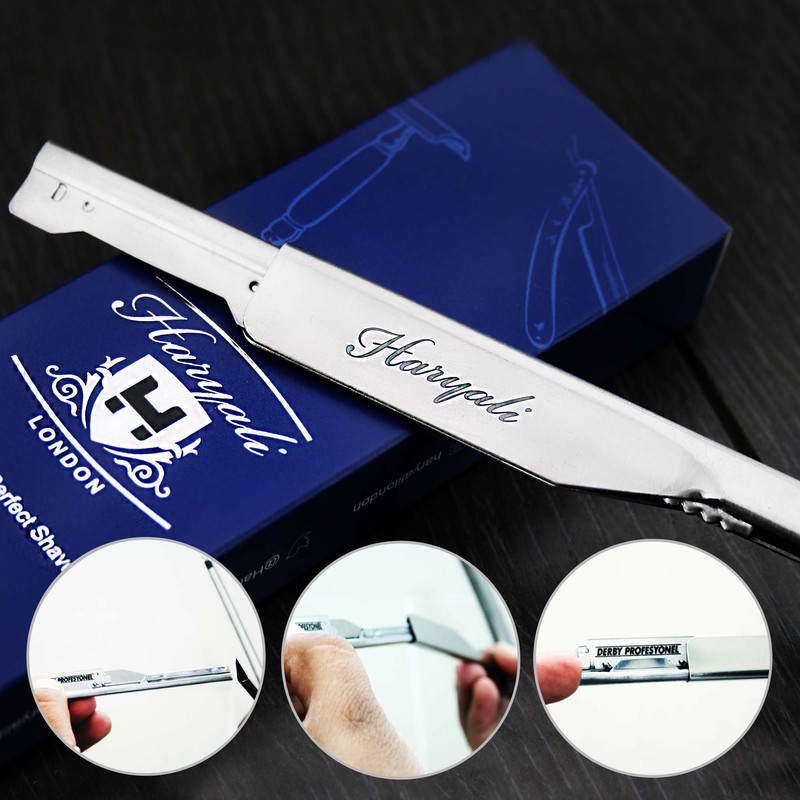 FOLDING BARBER SHAVETTE RAZOR/STRAIGHT CUT THROAT RAZOR IN MAROON (NO BLADES) FOR MEN'S COMES WITH A LEATHER POUCH + BOX