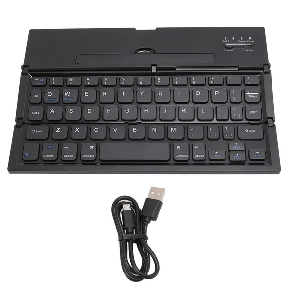 1、PORTABLE DESIGN: Portable foldable keyboard with phone stand for convenient work anytime, anywhere. Standard size design provides accurate and fast typing experience. Quiet keys allow you to focus on work. Ideal for travel and business trips. 2、AUTO ON OFF AND Energy Saving: The auto on off and sleep mode features help conserve battery. With dual channel support, it can connect to 2 devices at a time and switch freely. This portable, folding, wireless Bluetooth keyboard is perfect for both travel and study. 3、MULTI FUNCTIONAL: This Bluetooth keyboard offers extended battery life, wide compatibility, dual Bluetooth channels, triple folding, and small packaging size, designed for easy portable daily use. 4、ALUMINUM ALLOY SHELL: Unlike other plastic keyboards, this wireless Bluetooth keyboard features an aluminum alloy shell, not easy to wear and deformation, making it smooth and luxurious. 5、SEAMLESS COMPATIBILITY: Bluetooth keyboard works seamlessly with for iOS, for Android, and for Windows. Stable connection and fast response to devices within a range of 10 meters. Compatible with for IOS Phone 13 12 11 X 8 7 6, for Galaxy Tab, and more.