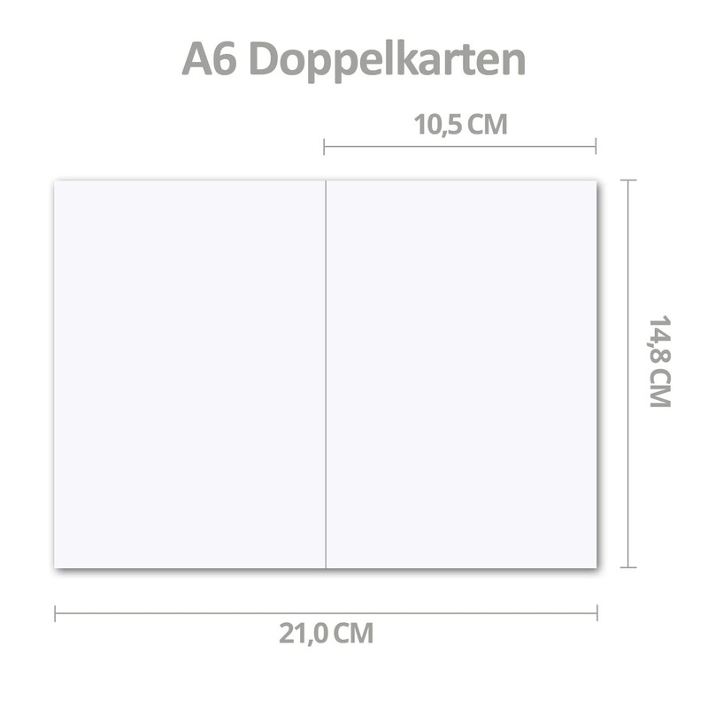 - Cards: format: DIN A6 - size final format (folded): 148 x 105 mm - size open (unfolded) 148 x 210 mm - weight: 220 g/m² - delivered unfolded