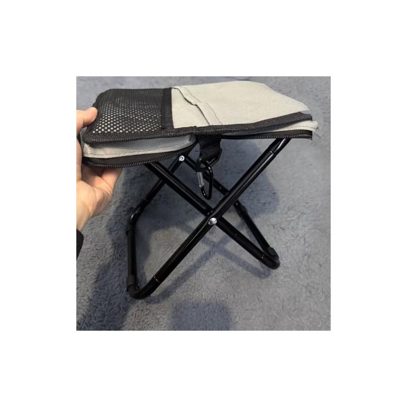 Folding Chair, Load Capacity 264.6 lbs (120 kg), Includes Innovative Shoulder Strap: Ultra Lightweight, Camping Chair, Fishing Stool, Integrated Storage Bag, Gray Carbon Steel, Includes Foot Pad and
