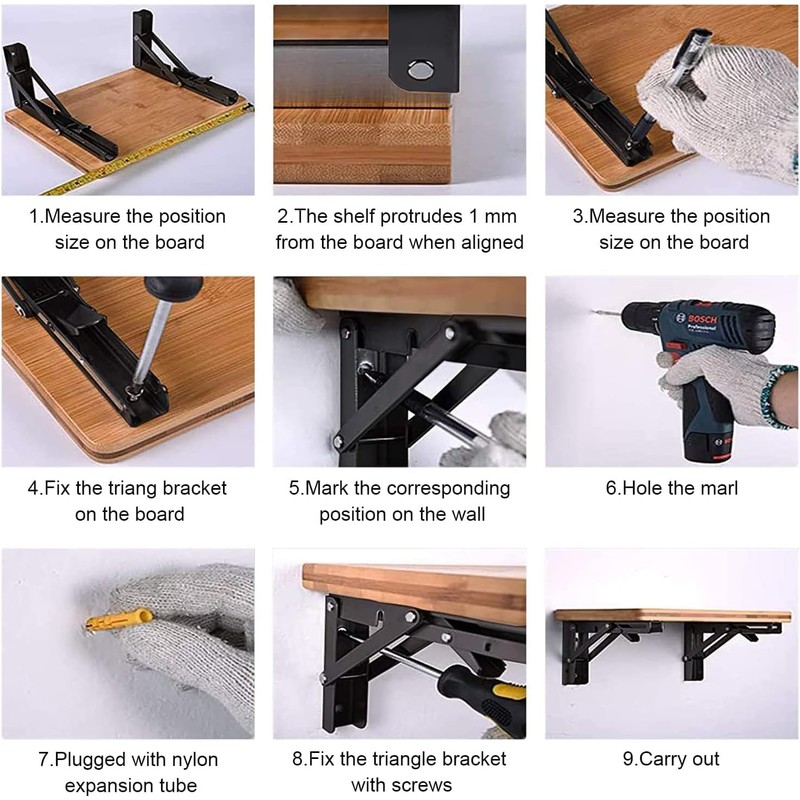 - Wide Applications The folding console is ideal for DIY projects around the home. It can be used as a shelf bracket in the kitchen, bathroom, balcony or as an additional work area in workshop and garage. It is also ideal for boats, caravans or exhibition stands.