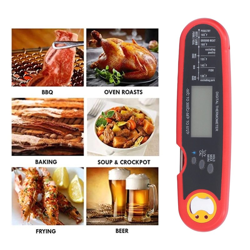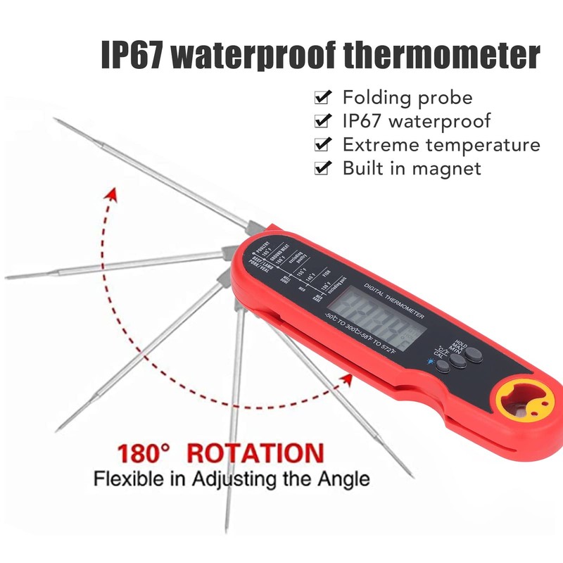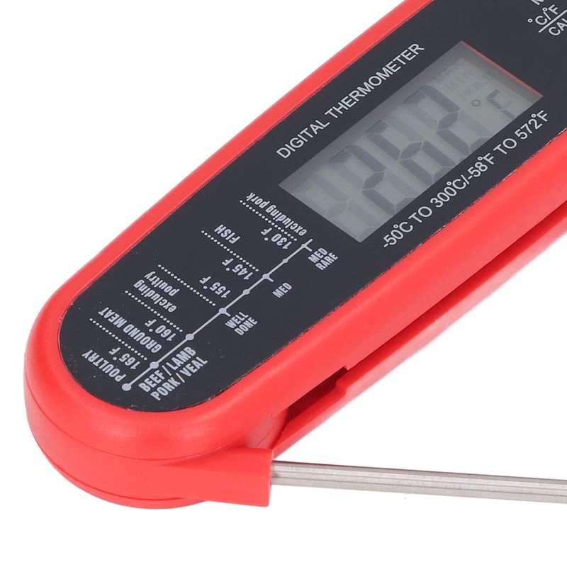 Folding Food Thermometer, Quick Temperature Measuring Electrical Meat Thermometer Probe for Grilling and Cooking, Essential Kitchen Gadget (Red)