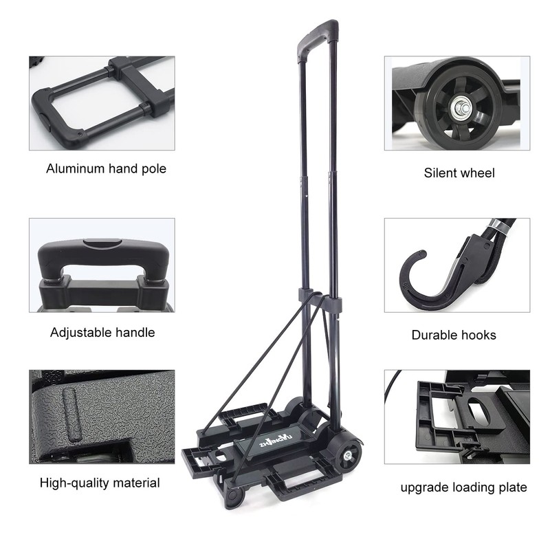 - CARRYING WEIGHT : Folding Trolley can Carry 70 Pounds of Cargo and Run Freely, and the Loading Volume is 60*50*50cm. The Cargo does not Shake. Collapsible Hand Truck is Suitable for use on Narrow Roads and Rough Roads (it is Slower to travel on these roads), and the Trolley Weighs is 2.9 Pounds.