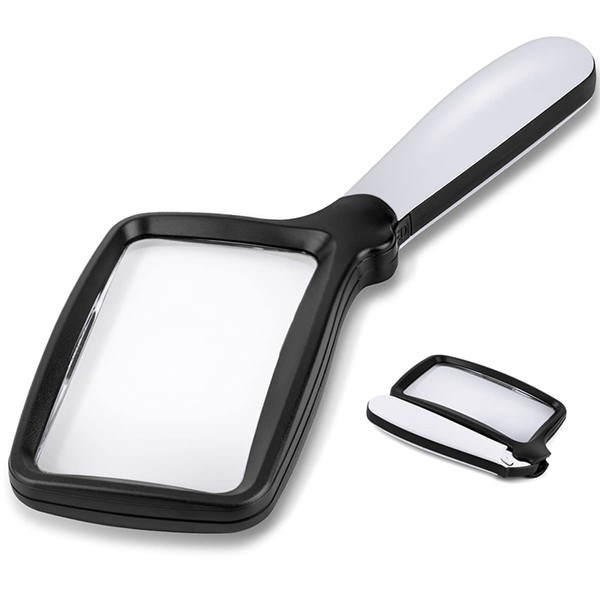 Folding Handheld Magnifying Glass with Light, 3X Large Rectangle Reading Magnifier with Dimmable LED for Seniors with Macular Degeneration, Newspaper, Books, Small Print, Lighted Gift for Low Visions