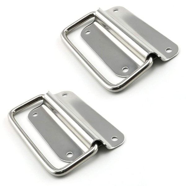 Folding Handle, Stainless Steel, Pack of 2, Carry Handle for Boxes, Hardware Box, Silver Folding Handle, Carry Handles for Speaker Boxes, Toolbox, Door Tool Boxes