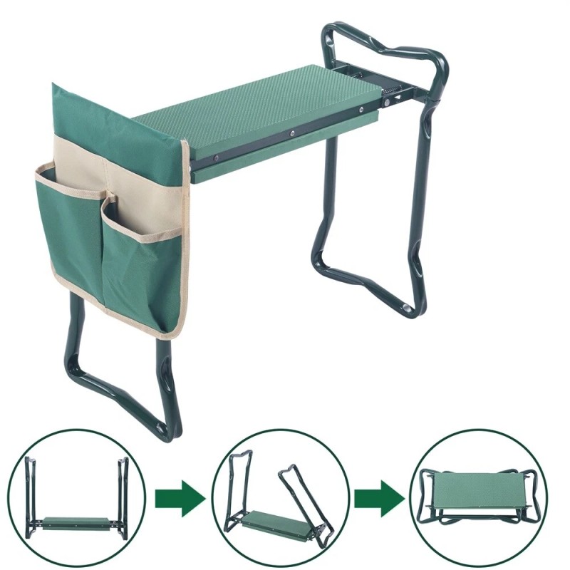 Folding Kneeler Garden Kneeling Bench Soft Eva Pad Seat With Stool Pouch Outdoor